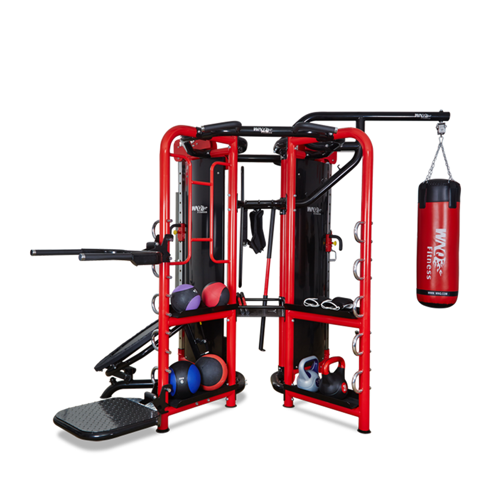 可最少提供7人同时练习,10种以上的练习方式,以下只列出一些常用的练习项目:弹力球运动、拉力训练、二头肌训练、深蹲训练、平拉训练、双杆引体向上、沙袋拳击、踏板运动、吊绳、哑铃、壶铃等。